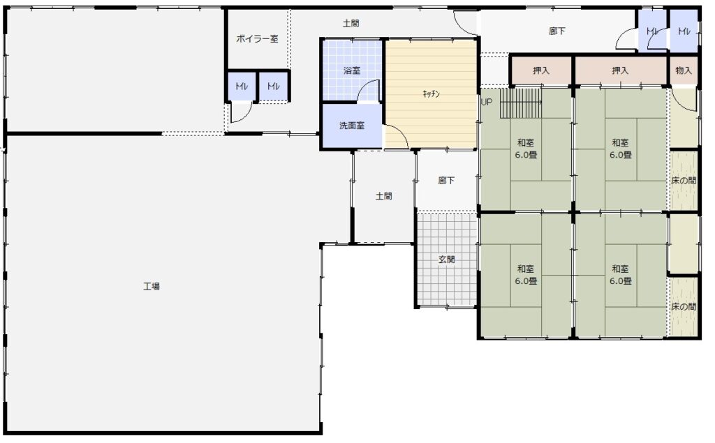 間取り | 8K+倉庫(元工場) | 構造 | 木造瓦葺2階建 |