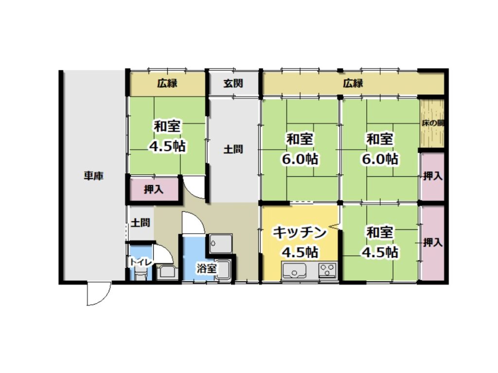 間取り | 4K | 構造 | 木造セメント瓦葺 平屋建 |