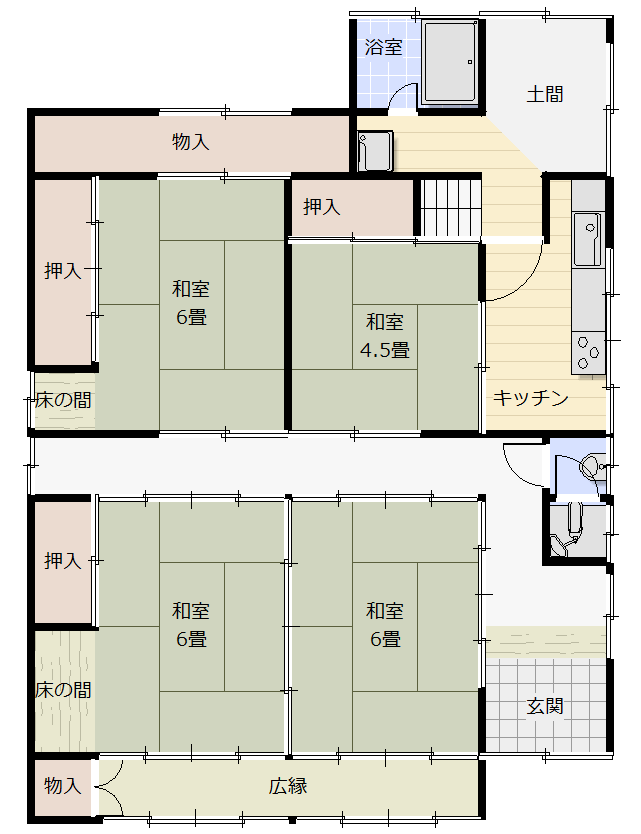 間取り | 6K+納戸 | 構造 | 木造瓦葺2階建 |