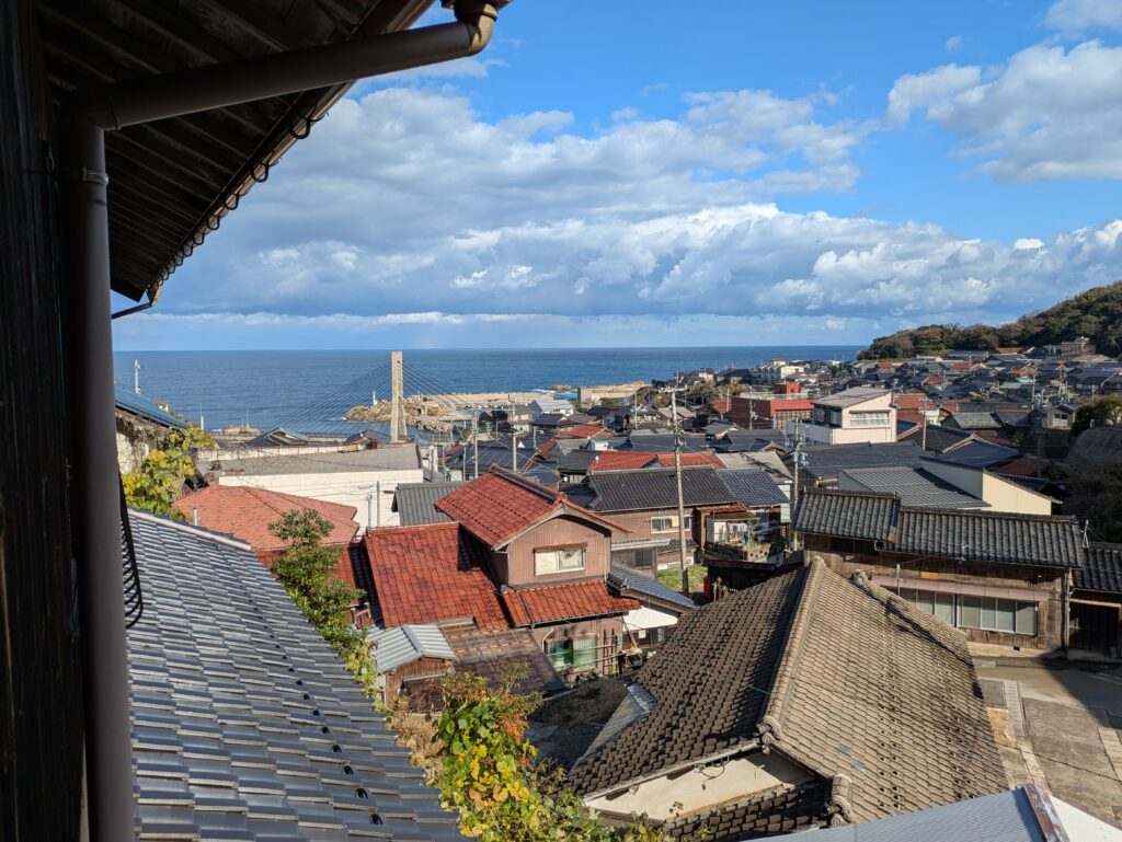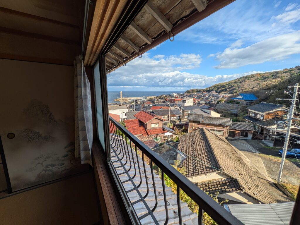 縁側、2階の部屋から間人の町と海が見えます。特に南側の和室からの景色が好き♡夏はビール片手に。冬はコタツに入りながらゆっくり景色見てたい空間です。