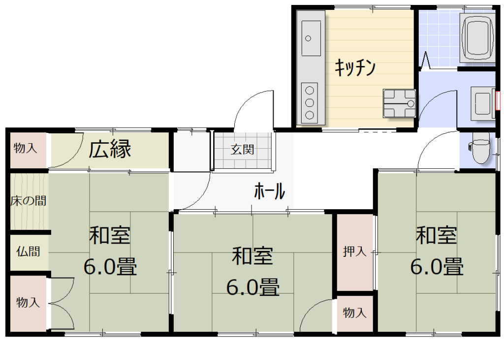 | 間取り | 3K | 構造 | 軽量鉄骨造亜鉛メッキ鋼板葺平家建 |